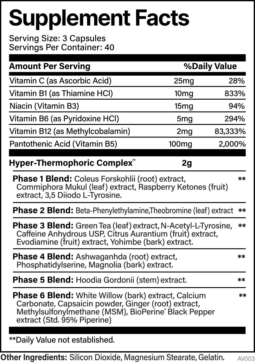 Introducing HYPERCOR™ from Katalyst Nutraceuticals®. This advanced, multiphase metabolic formula was carefully crafted with a bevy of potent ingredients like Citrus Aurantium, Green Tea Extract, Raspberry Ketones, Thiamine, Caffeine Anhydrous USP, Ashwagandha, Hoodia Gordonii and Capsaicin Powder Extract to help improve body composition through increased metabolic rate, thermogenesis and boosted energy levels. Need a BIG energetic pick-me-up before you hit the gym? Make HYPERCOR™ your go-to metabolic/thermogenic supplement and get ready to sweat!